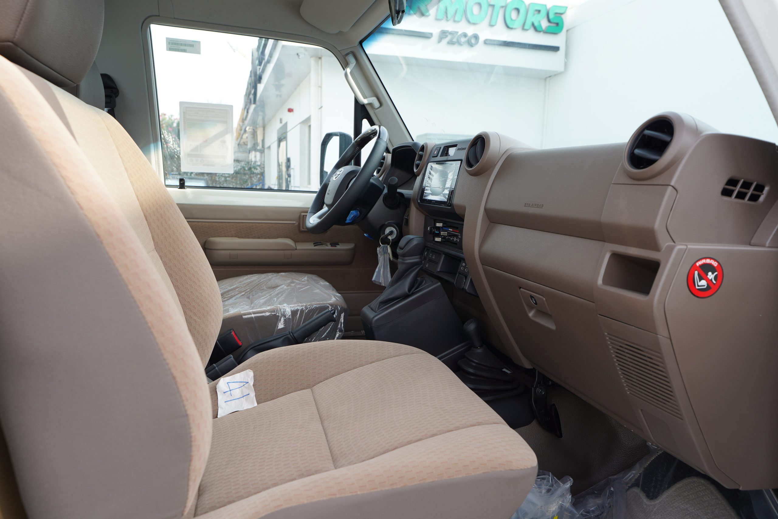 Inside the cabin, the Land Cruiser 79 offers comfort and convenience. The seats are upholstered in leather, providing a luxurious feel. The front seats are separate and accommodate two passengers, including the driver. The manual air conditioning system ensures a pleasant cabin temperature. The AC vents feature a silver and black color scheme, adding a touch of sophistication. LED cabin lamps illuminate the interior, and a center console offers storage and convenience. Front cup holders are provided for added practicality. The telescopic steering wheel allows for personalized adjustment, ensuring a comfortable driving position. Two USB-C ports are available for device charging and connectivity. Carpet floor mats add a touch of luxury and protect the cabin floor.