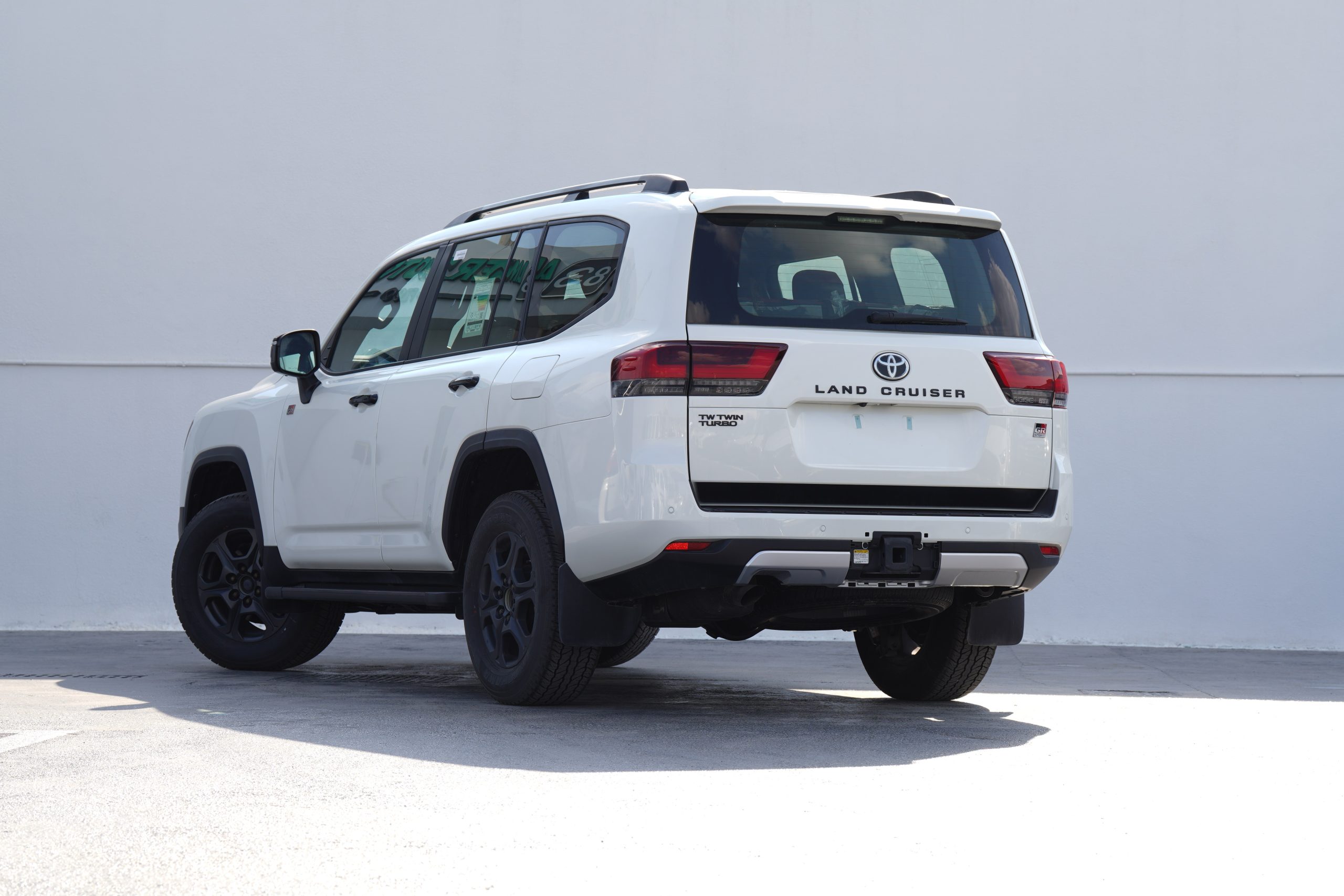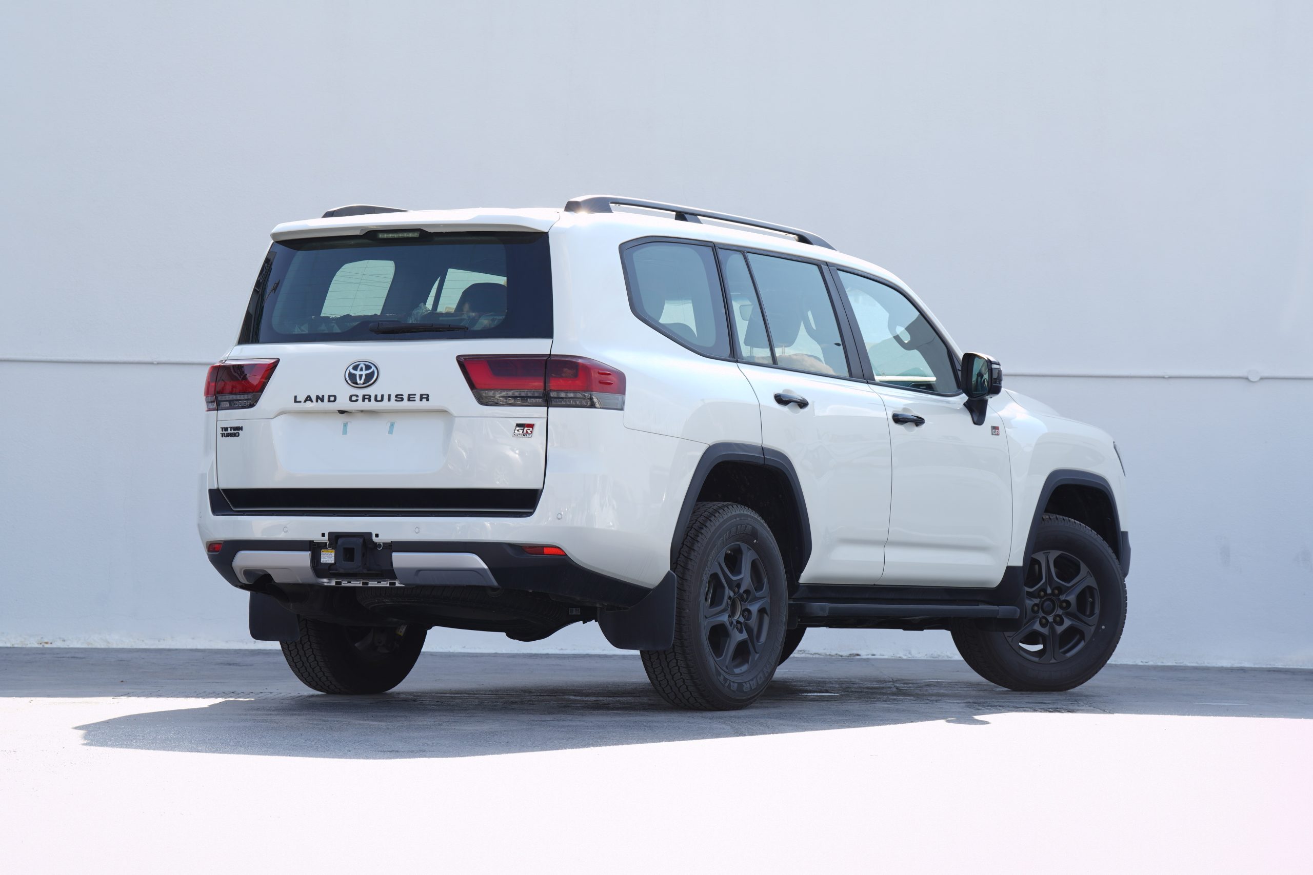 The 2024 Land Cruiser 300 is exterior design offers an overwhelming presence and strength through a new overall design language. It receives two twin-turbo V-6 engine options. 2024 Toyota Land Cruiser 300 GR Sport V6 3.3L Diesel Twin Turbo 10 Speed Automatic is with Suspension (GRS) with new Stability Control (EKDSS), Front Console Box High Film Woody, Tires 265/65R18 (Alloy) GR-S and Differential Locks Front and Rear with one fuel tank of 80 liters.